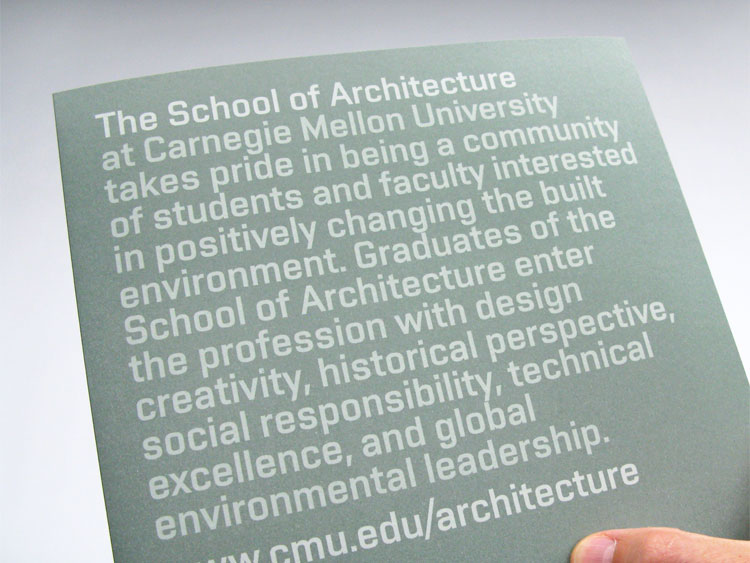 A marathon photo shoot by Victor Ng over two days—as classes were ending—gives prospective students a realistic feel for Carnegie Mellon’s School of Architecture and its classes, programs, instructors and facilities. The “I want to…” quotes came from asking students why they wanted to be an architect, as Victor shot their portraits. 5.5 x 7.5 inches, 68 pages, with a 9 x 11.25-inch pocket folder that doesn’t need to fold.