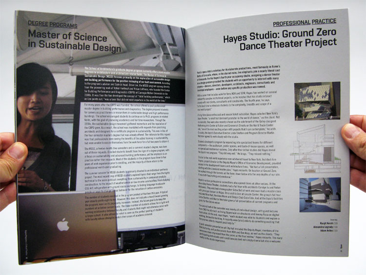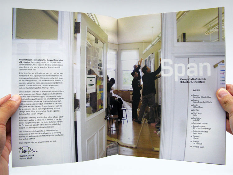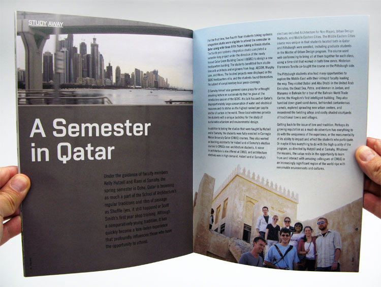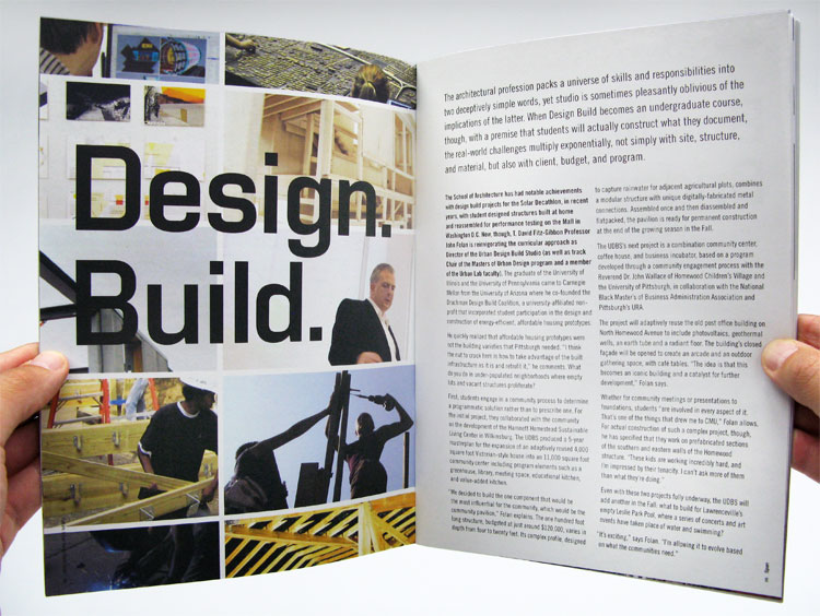 This magazine redesign for Carnegie Mellon’s School of Architecture serves as a recap to the school’s past year. The design is consistent with the new viewbook. 8 x 10.875 inches, 32 pages.