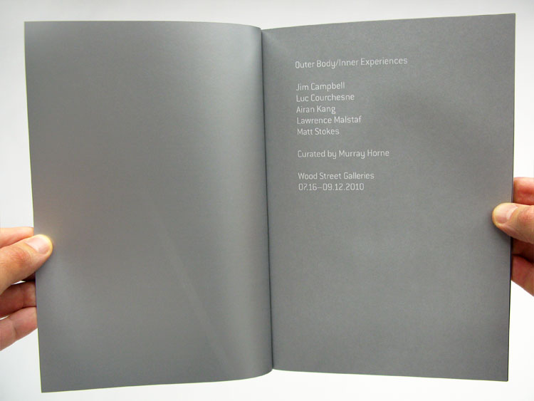 This catalogue alternates between thin, uncoated paper for all the text and thick, glossy paper for the images. 7 x 10 inches, 36 pages.