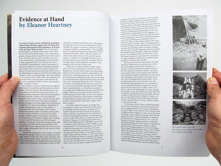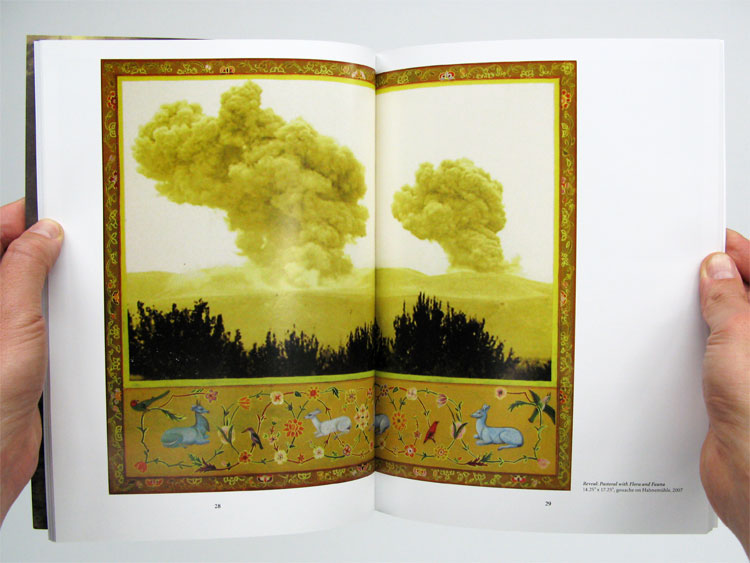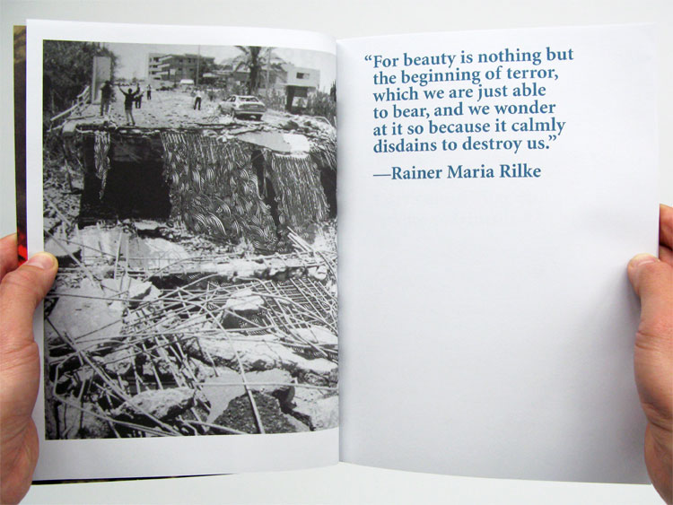 Susanne Slavick paints over photographic images of the wreckage of war. I tried to reference this with a half jacket on the cover. 8 x 11 inches, 84 pages.