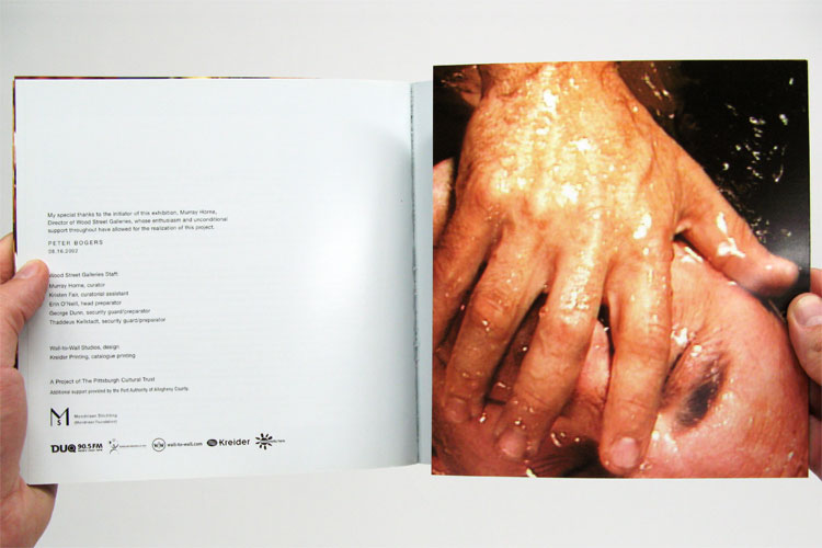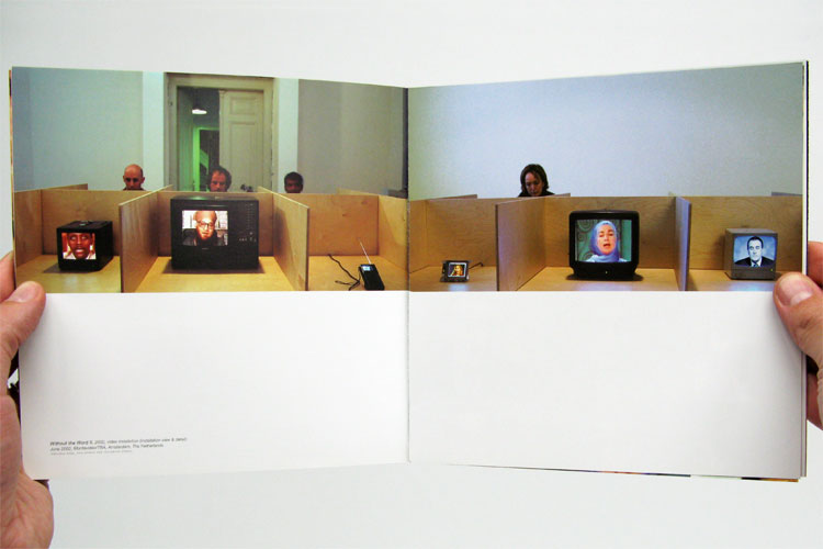 The fold-out cover features Bogers’ piece Play-Rev-Play—a video in which he slowly rises to the surface of the water only to be pushed violently back by a mysterious hand. 8 x 8 inches, 68 pages.