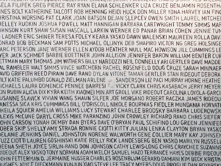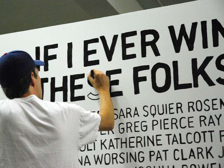 Drawn in a Day was a group exhibition where 12 artists were each given part of a wall in a gallery and eight hours to draw something. I can’t draw so I used it as an opportunity to give a “shout out” (and a promise) to the important people in my life.