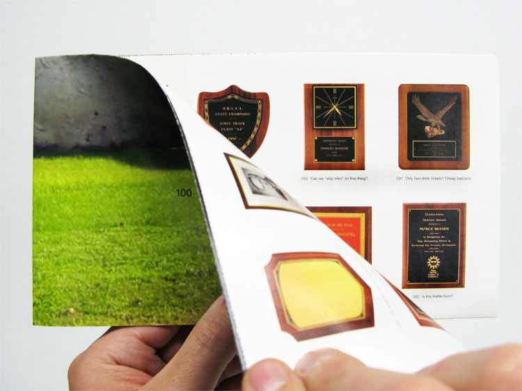 In response to criticism that previous AIGA Pittsburgh design shows did not represent enough studios, the powers-that-be decided the next year’s judges would choose 100 pieces for the show (whether they wanted to or not). I designed this call for entries to harmlessly poke fun at that decision. Under each trophy, I wrote something that might be overheard at the reception. Self-mailer that unfolds into a 18.75 x 27-inch poster.